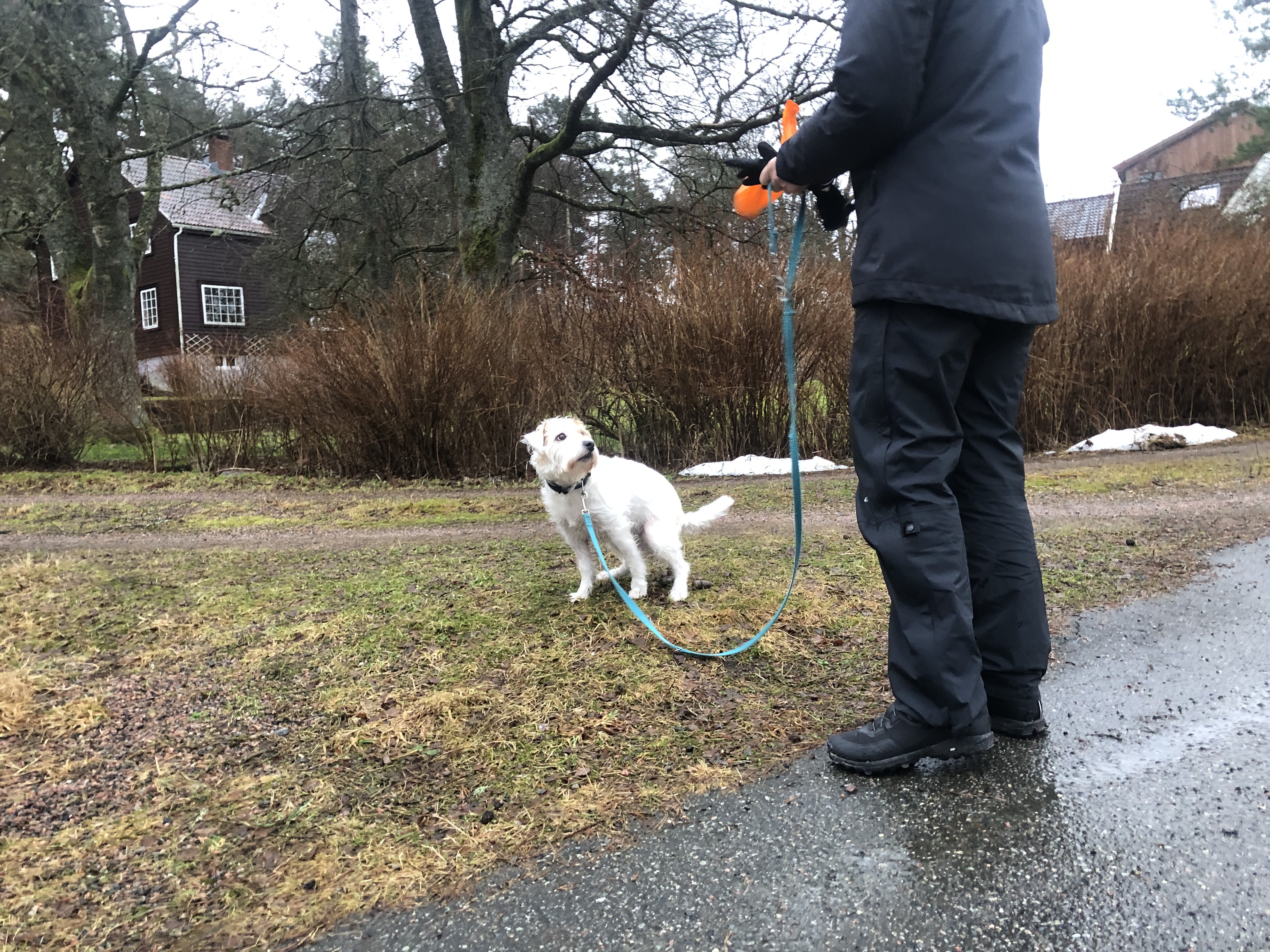 Regnet pøser ned for fullt, og Bror må ut og lufte seg før lunsjtiden. Vi ble advart i forkant om hans styrke, og hvor utfordrende en tur med han kunne bli. Et lite stykke ut i turen får Sørnett en mulighet til å prøve seg på å leie ham. Det tar et øyeblikk før tilliten er på plass, men etter litt knuffing og trekking i båndet begynner Bror å bli min bror, og vi skaper et bånd bak båndet.