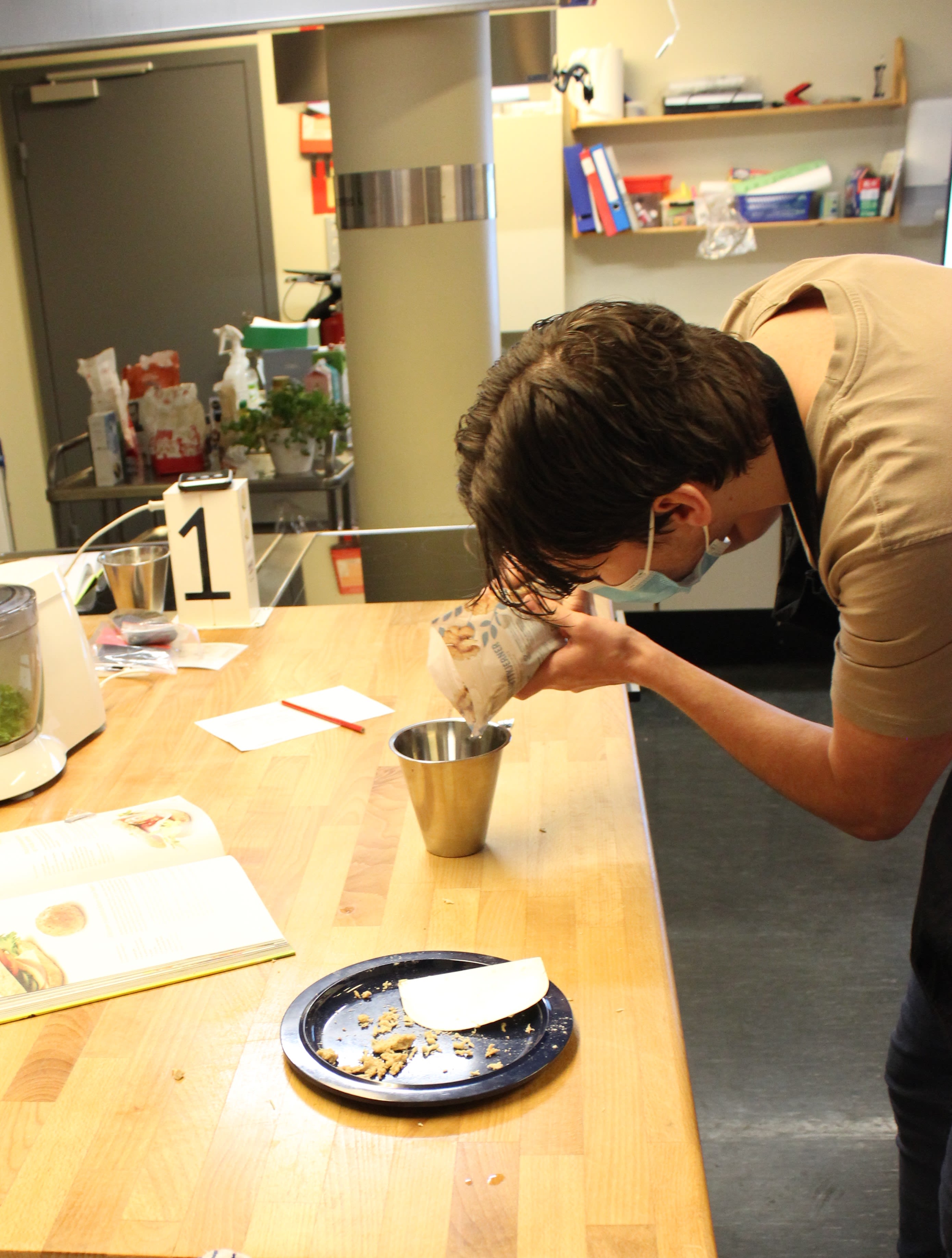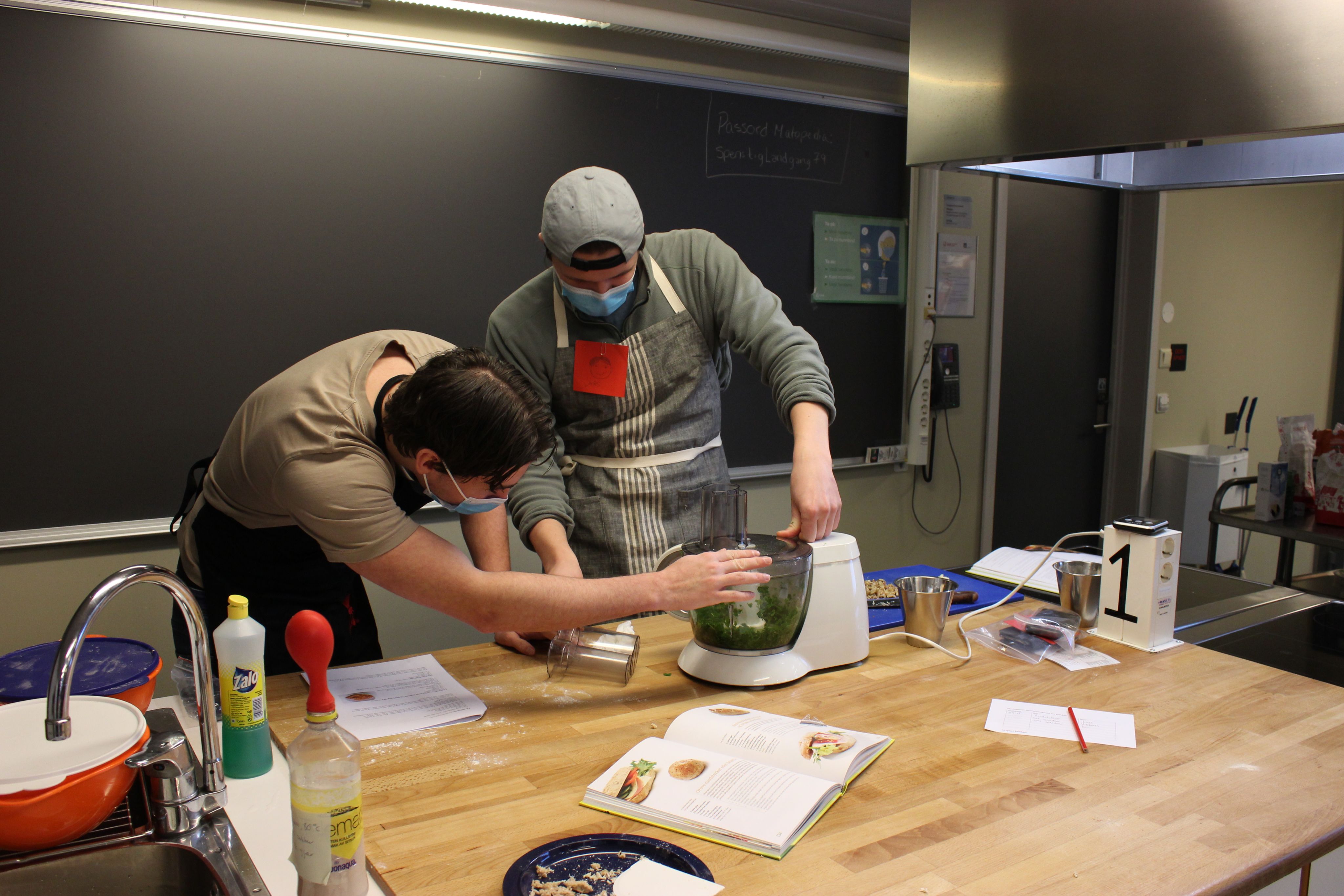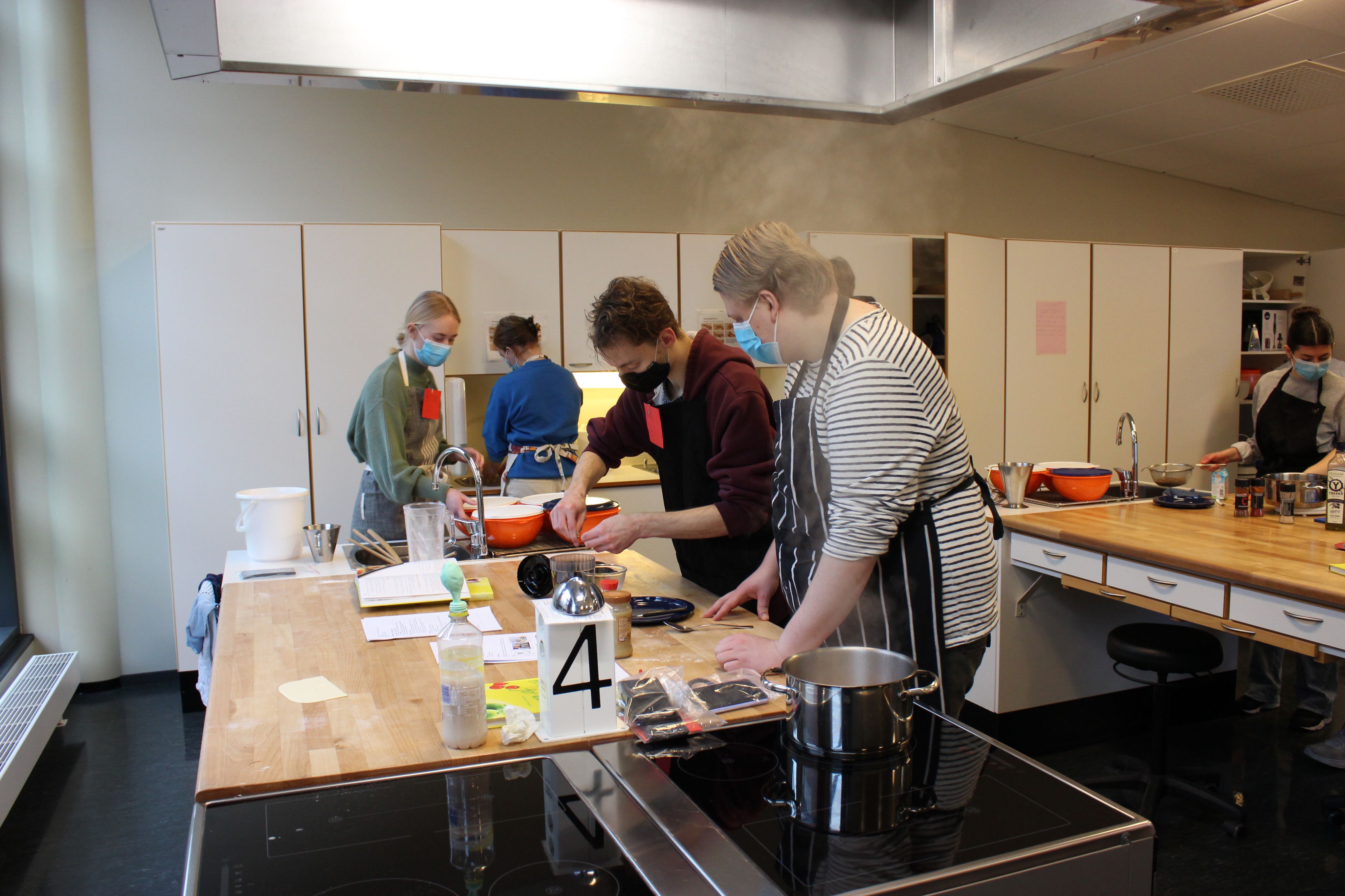 Inne på kjøkkenet svirrer studentene rundt for å finne ingredienser og oppskrifter som trengs for baksten.