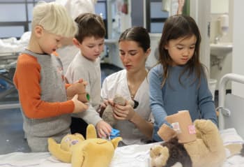 På UiA har sykepleierstudentene invitert barnehagebarn til bamsesykehus.