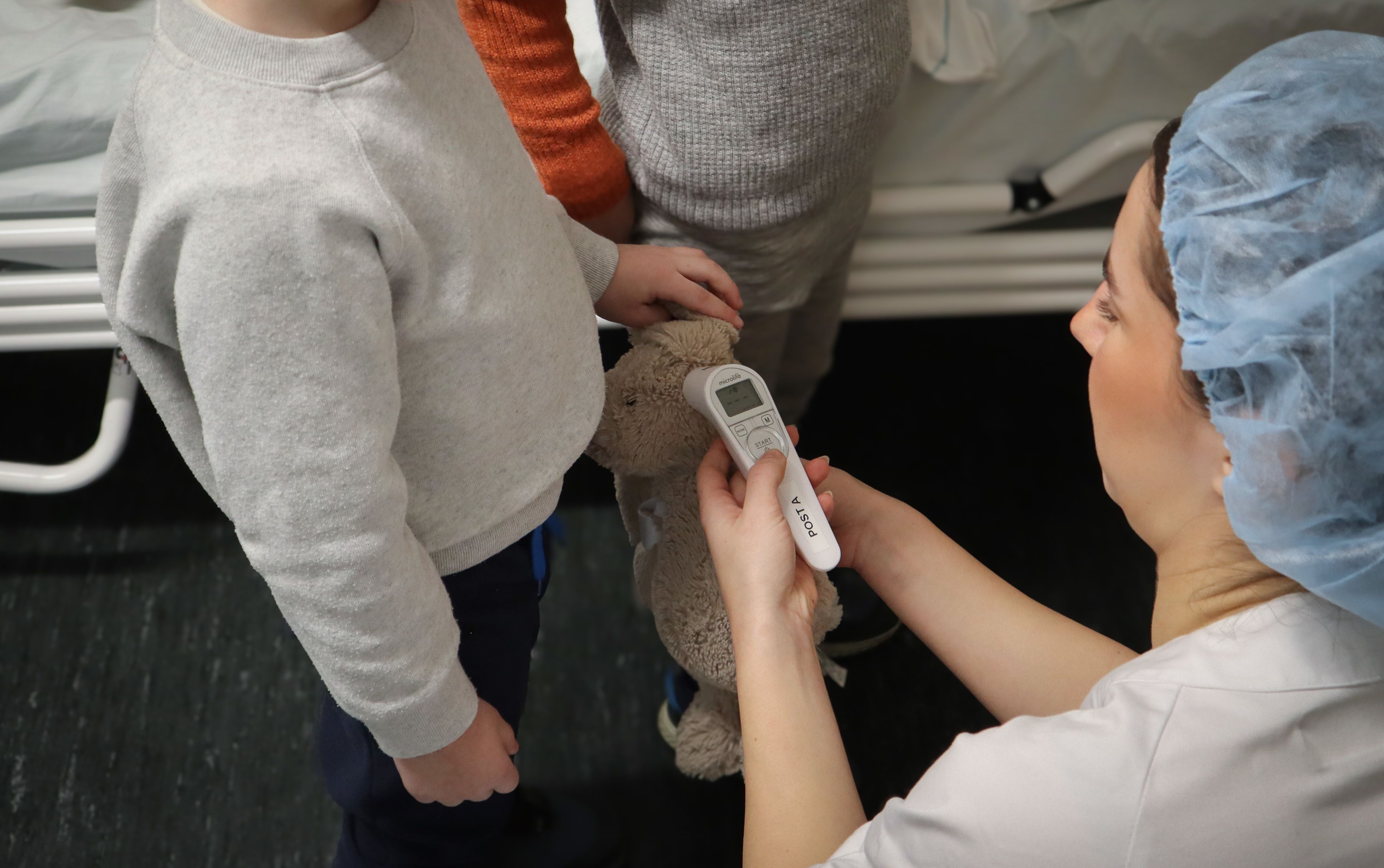Bamsene tas tett inntil kroppen igjen, før barna går ut av rommet.