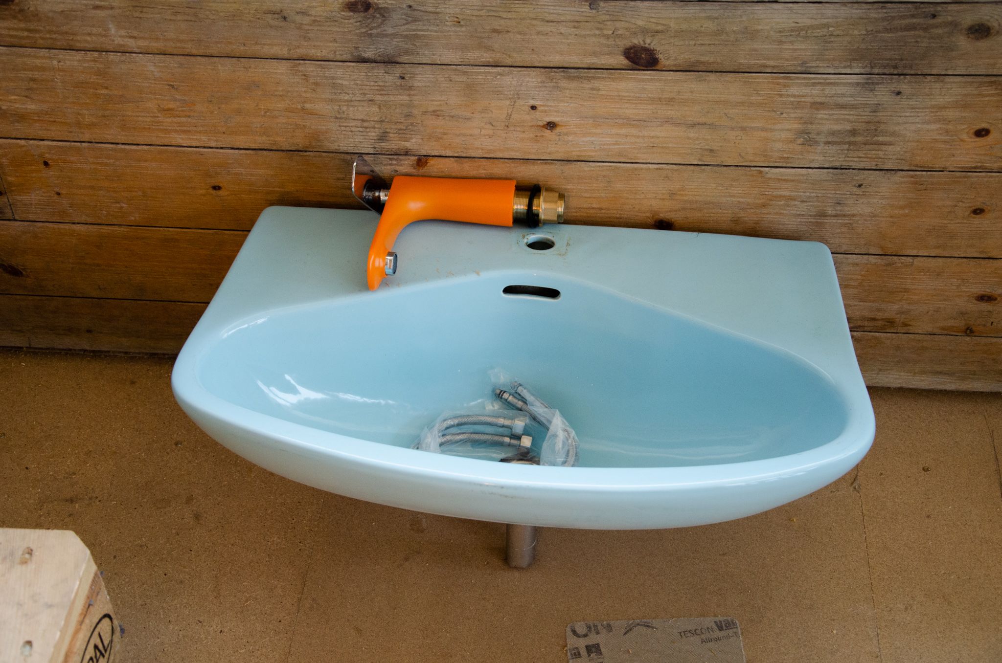 Vask fra 60-tallet kombinert med nytt blandebatteri. Foto: Karianne Vikse Storesund