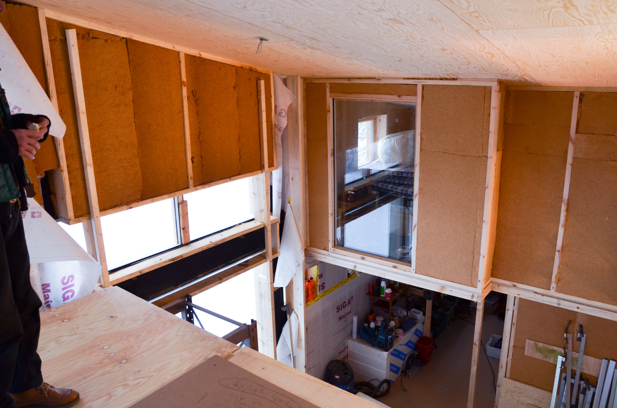 Ellers er mesteparten av huset isolert med trefiber fra Hunton. De lager sin isolasjon av avkapp fra treindustrien. Monan legger ikke skjul på at han synes det er fint å tenke på at huset er isolert med gjenbruksmaterialer som krever lite energi til produksjon og som føles naturlig å ha i veggen sin.