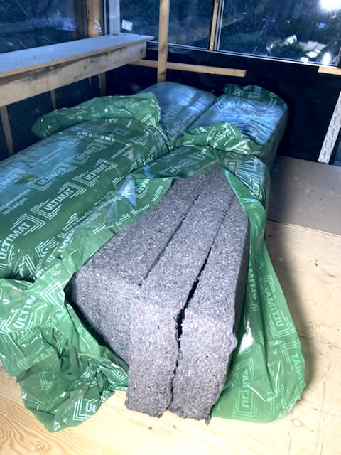 Monan fikk tak i restpartiet til Ultimat og har brukt det i huset sitt. Denne typen isolasjon er laget av tekstiler som har blitt levert til Fretex. Foto: Privat
