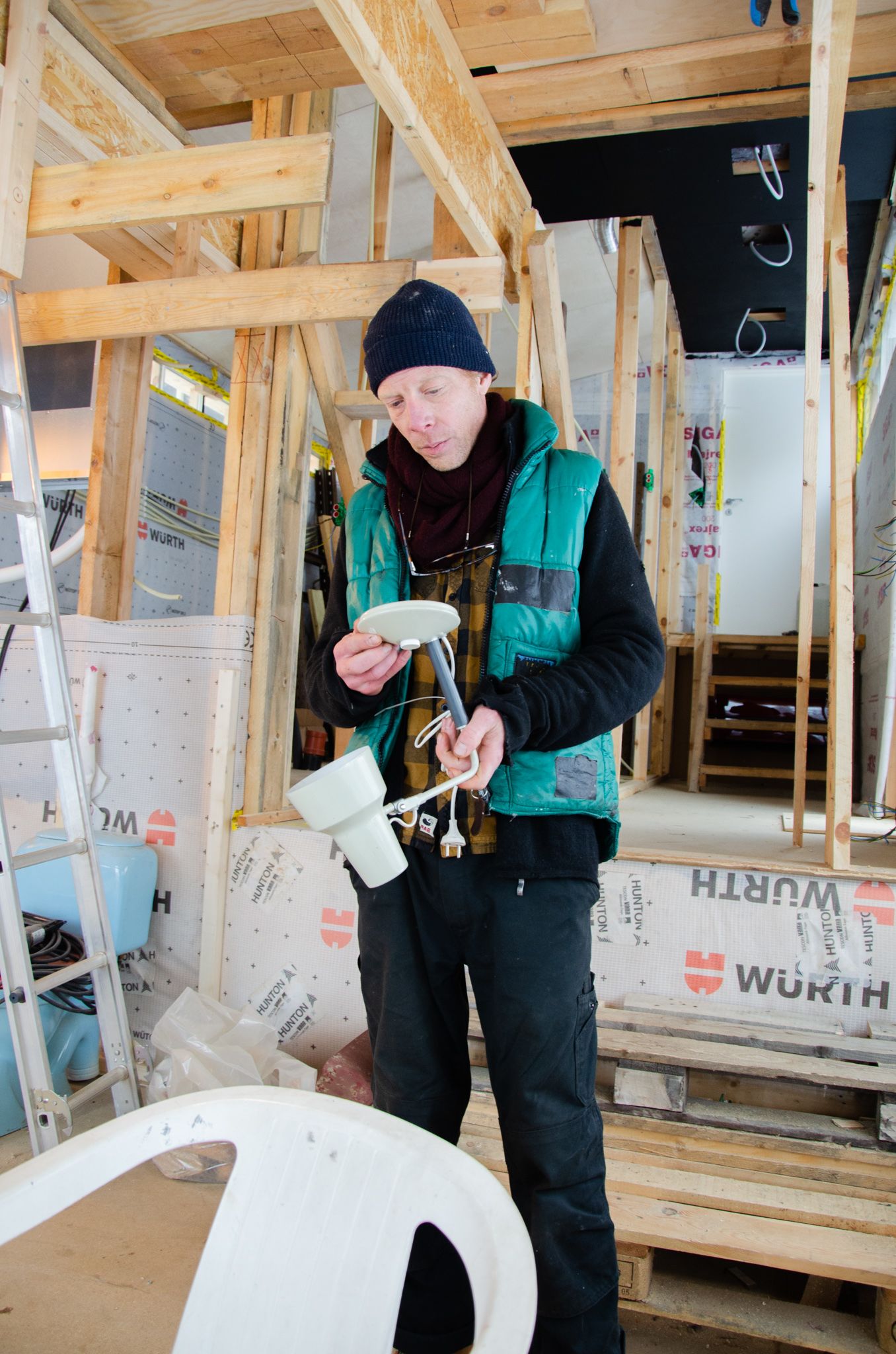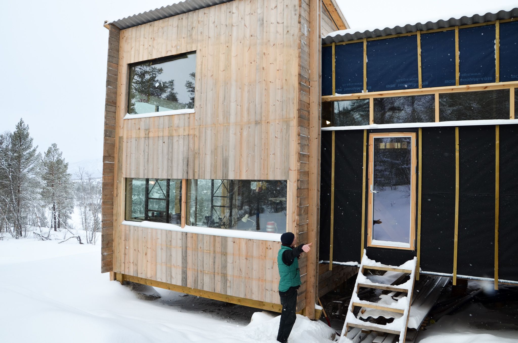 Prosjektlederen, arkitekten, snekkeren og eieren bak det fascinerende huset heter Trond Henning Monan. Han har takket ja til en liten omvisning og en prat. Til tross for at han har jobbet natt og dag i månedsvis, og at det fortsatt gjenstår mange hundre timer før huset er ferdig, møter Monan oss med et stort smil og tar oss med rundt på fremsiden av huset. Vi skal ikke gå mange skrittene i den dype snøen før Monan engasjert begynner å peke og forklare.