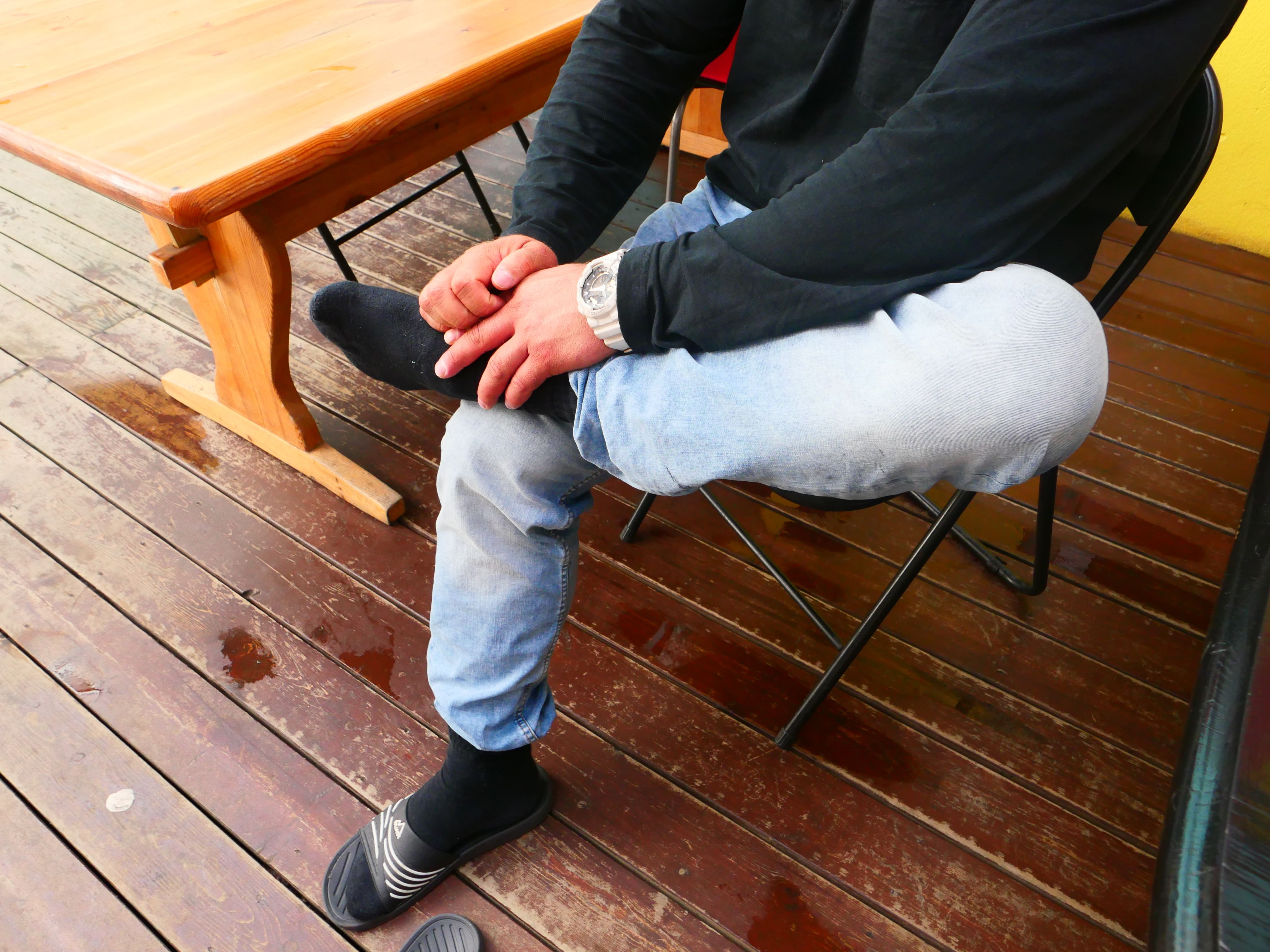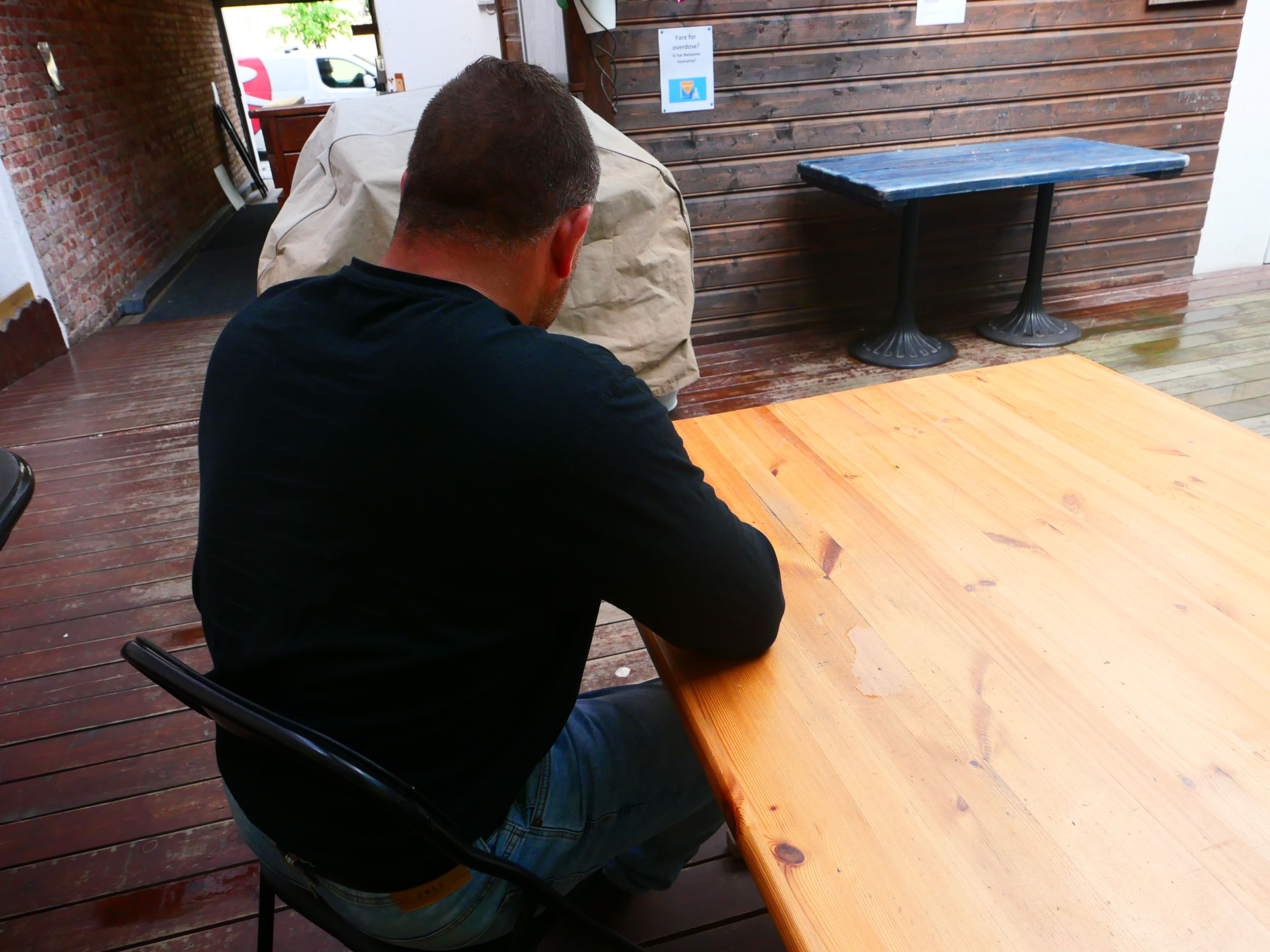 Mens han tar et dypt åndedrag og setter seg frem på stolsetet, forteller han at han fant kompisen med brukket nakke.