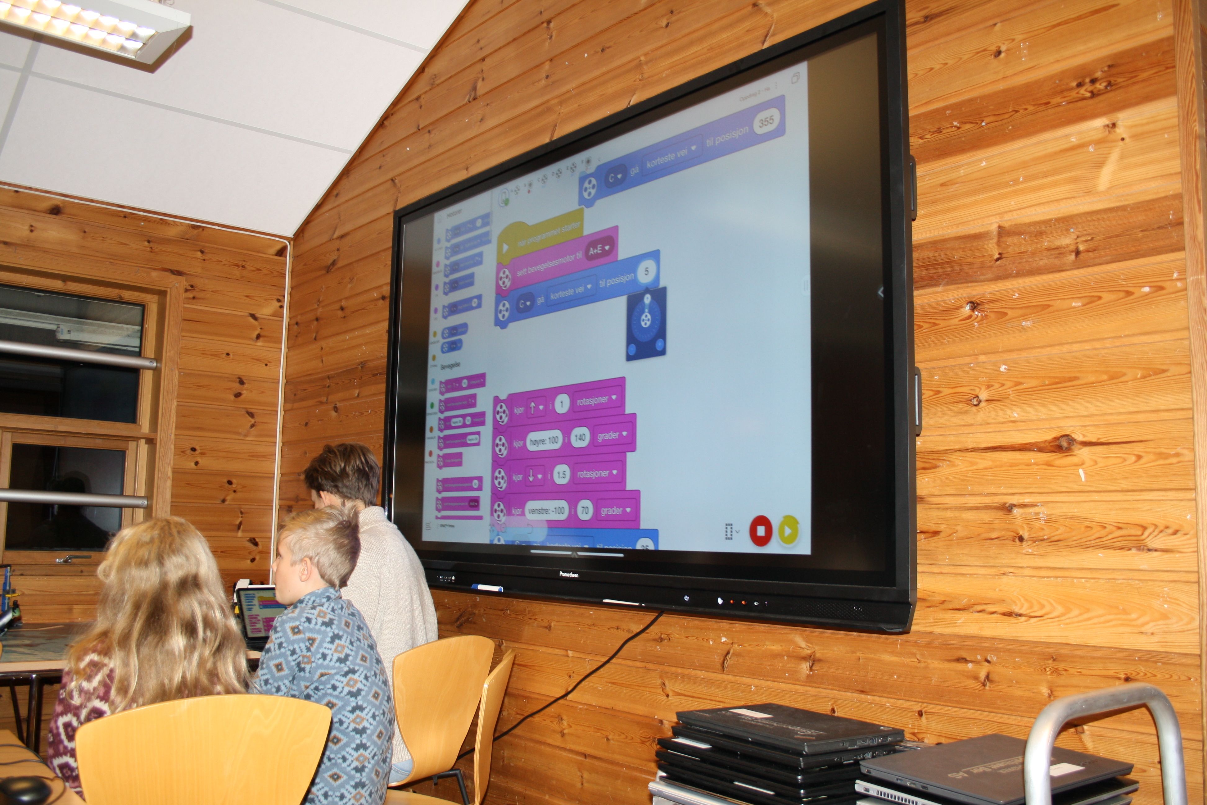 Ved å justere på verdier på Pc-programmet flytter barna fjernstyrte Lego-kjøretøy. Foto: Espen Seglem Wekre