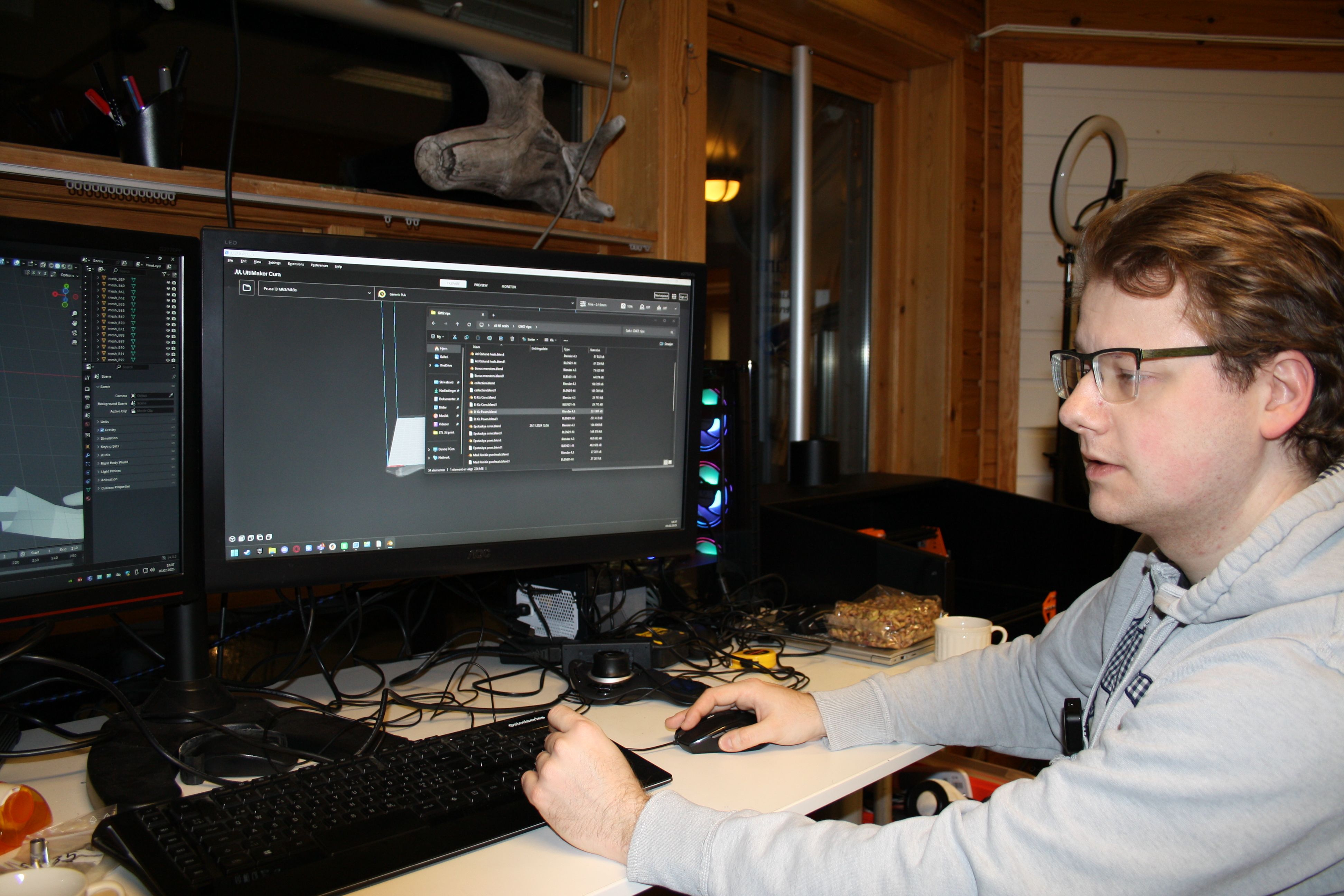 Han viser hvordan han ved hjelp av programmer som Slicer og en 3D printer, kan lage diverse ting.