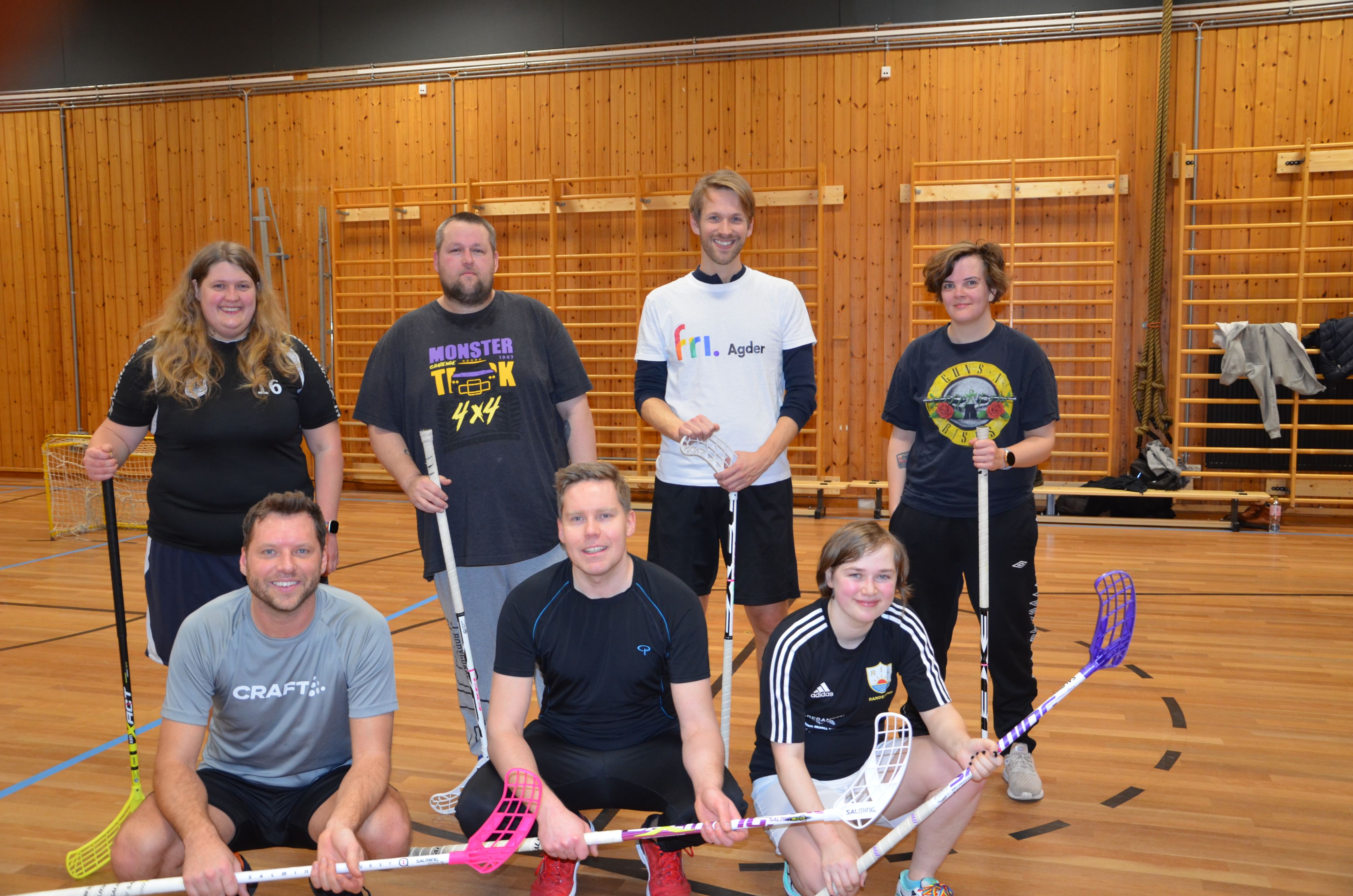 Roy Hægeland var en av de som startet med innebandy trening med skeiv idrett i Kristiansand, og møter en gjeng med glade innebandyspillere hver mandag.