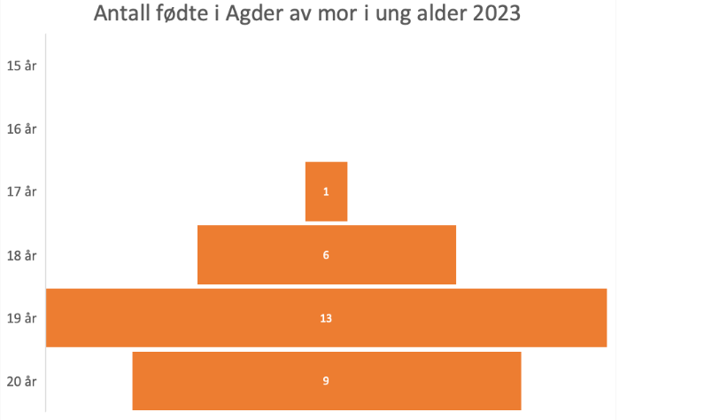 I Agder i dag er det ikke veldig mange unge som får barn. Statistikken viser at i 2023 var det bare én person som fikk barn i en alder av 17 i hele Agder. I Norge var det 5,9 av 1000 kvinner som valgte å avslutte svangerskapet i en alder av 15-19 år.