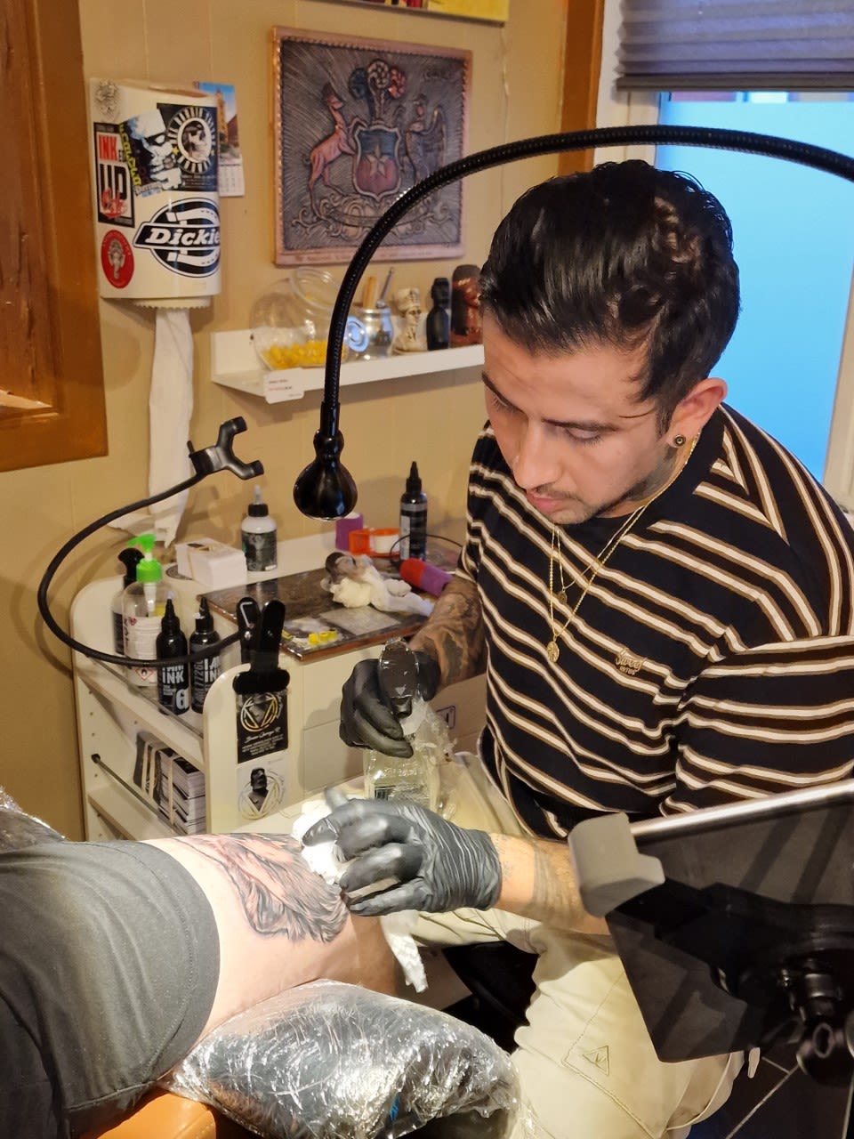 Tatovør Maximos ved Ink Story tattoo har hatt noen gøye øyeblikk som tatovør. Foto: Malene Nilsen