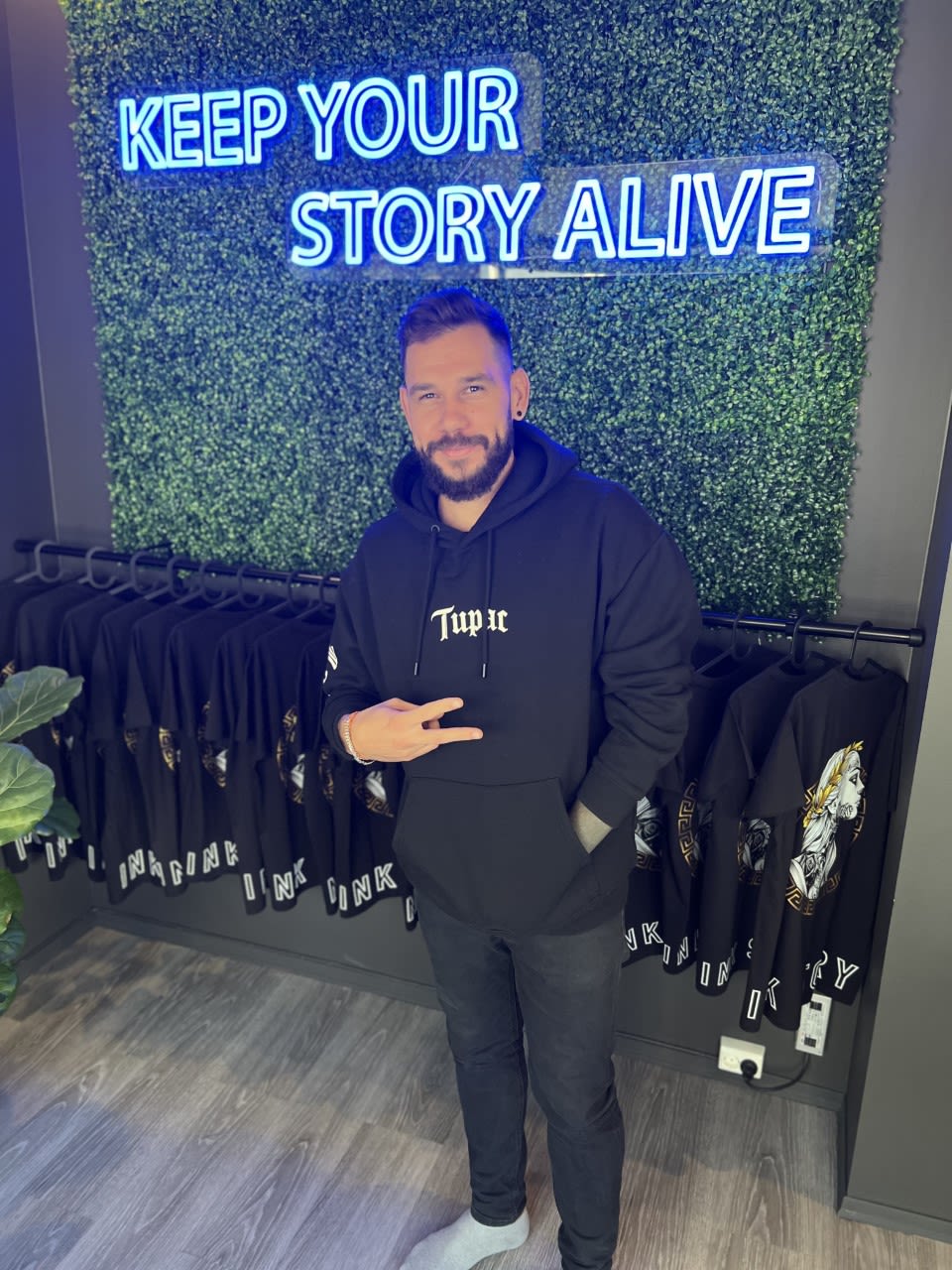 En av tatovørene på Ink Story, Maximos trives som tatovør.